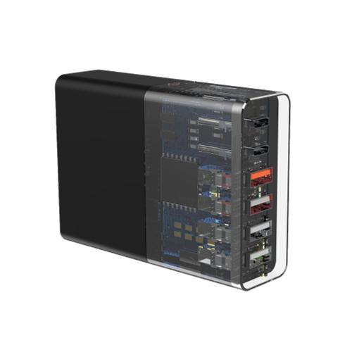 شحن متعدد بكفاءة عالية: يحتوي على 6 منافذ لدعم شحن عدة أجهزة في نفس الوقت، بما في ذلك الهواتف، التابلت، واللابتوب.