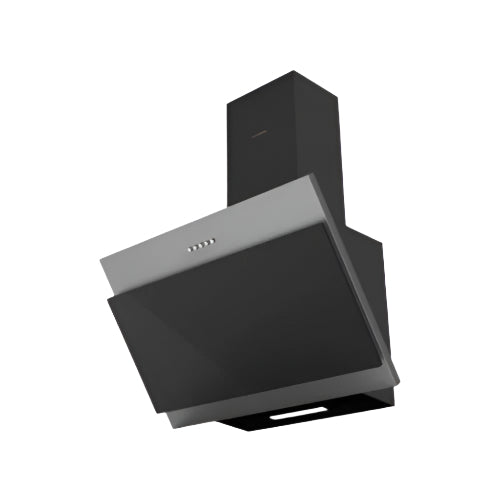 hood 60 cm DECORATIVE tilted - black crystal x stainless - 3 speeds x 650 m³ / hr - easy-to-clean 6-layer metal filters - LED lighting - carbon filters - the ability to operate with internal expulsion (carbon filters) or external expulsion (chimney).