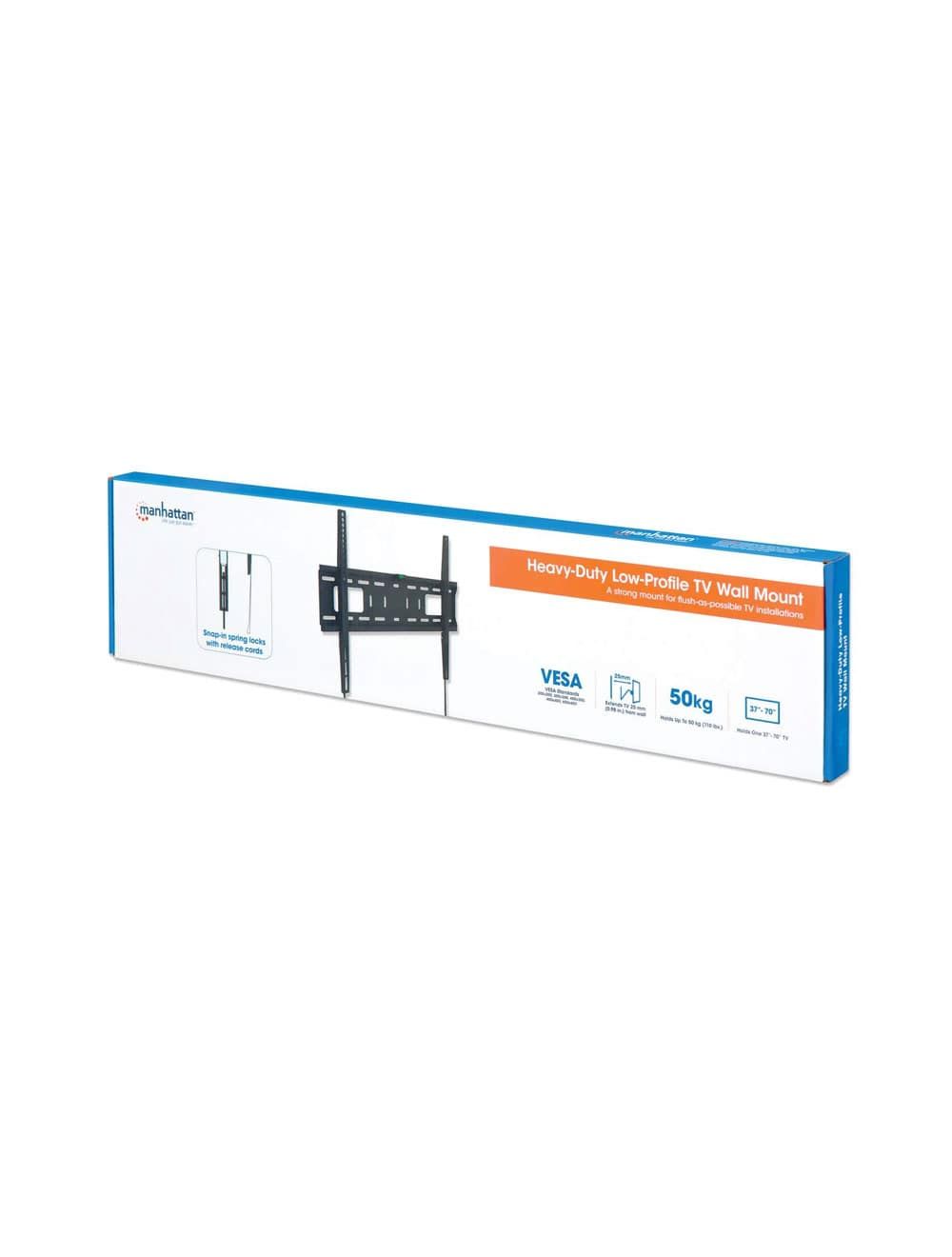 حامل حائط تلفزيون مانهاتن عالي التحمل منخفض الارتفاع، يحمل جهاز تلفزيون واحد مقاس 37 بوصة إلى 70 بوصة حتى 50 كجم (110 رطل)، ثابت، تصميم نحيف للغاية، أسود 461986