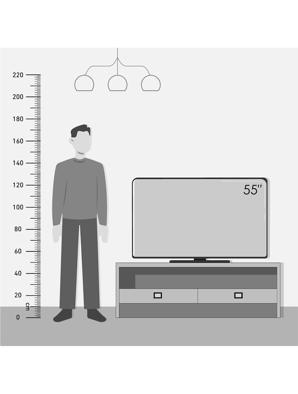 تأتي الشاشة بتصميم أنيق بإطار نحيف يعزز من جمال الغرفة، مع دقة 4K Ultra HD التي تمنحك وضوحًا واقعيًا وتفاصيل دقيقة في كل مشهد.