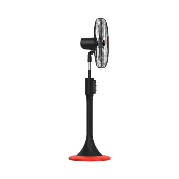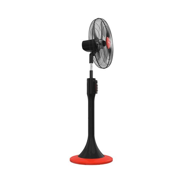 تتميز مروحة استاند تورنيدو بتصميمها الأنيق باللون الأسود × الأحمر، مما يجعلها قطعة عملية تضيف لمسة جمالية لأي مكان توضع فيه. العمود التلسكوبي يمنحك حرية التحكم في الارتفاع لتناسب جميع أوضاع الجلوس أو النوم.
