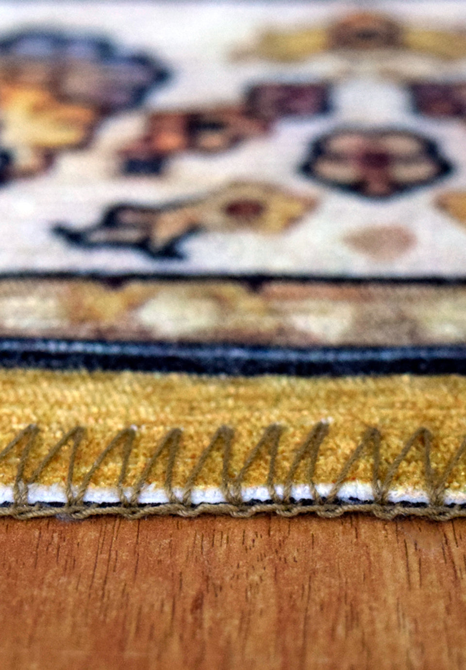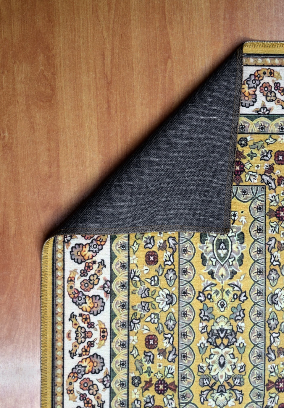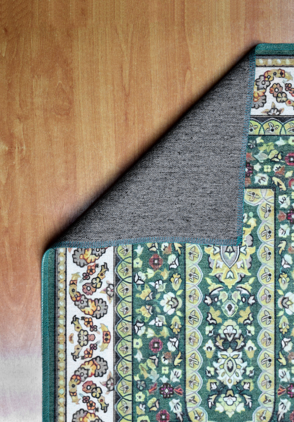 The backing is made of woven cotton and elastic , ensuring the rug stays firmly in place and prevents slipping during prayer.