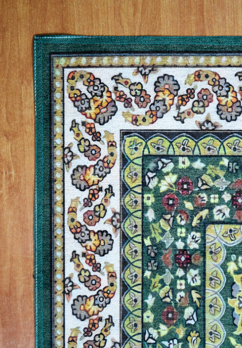 The Arabesque prayer rug is made of high-quality 100% polyester , providing a soft yet durable feel, making it ideal for everyday use.