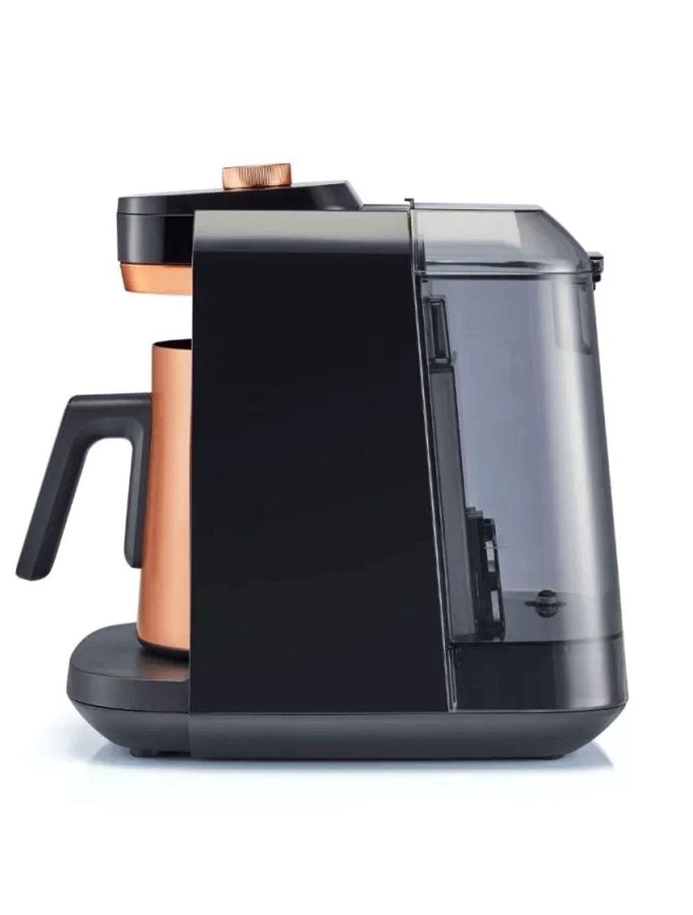 Measuring 21 x 30 x 29 cm, the machine is suitable for home and office use. It features a Teflon-coated bowl that's easy to clean and a removable 1.3-liter water tank, enough to prepare several cups at once.