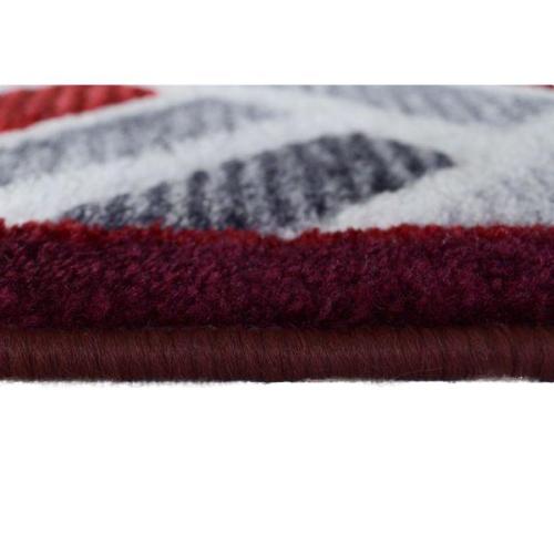It features a woven cotton and rubber backing to prevent slipping and ensure the rug stays firmly on the floor.