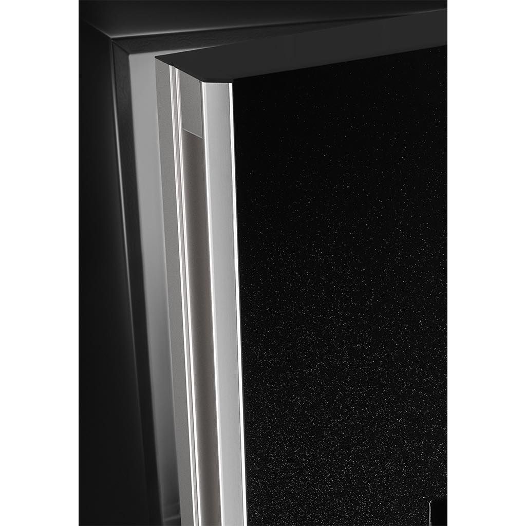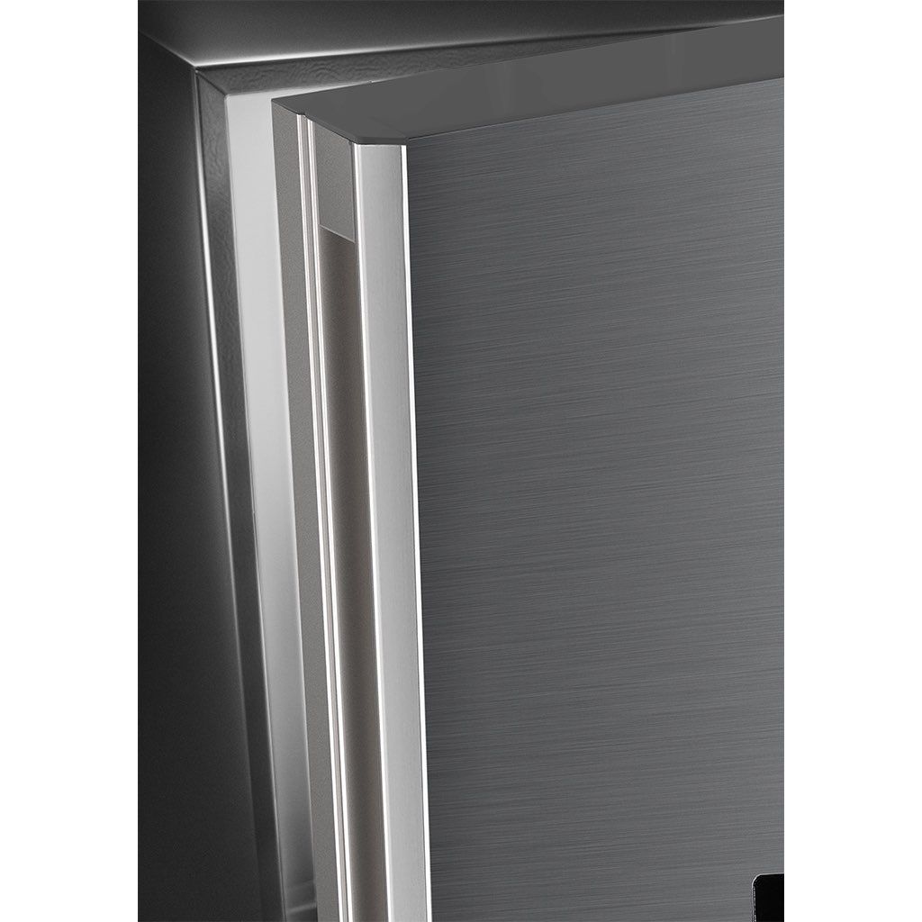 include an alarm that activates when the door is left open, repeating the alarm if the door remains open for more than three minutes, a noise-reducing design, LED lighting inside the refrigerator and freezer compartments, and heavy-duty glass shelves.
