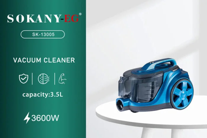 Sokany SK-13003/SK-13005 Electric Vacuum Cleaner, 3.5 Liters, 3600 Watts, Black and Blue