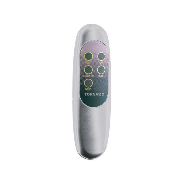 The Tornado fan operates at 60 ± 3 watts and features four plastic blades that provide automatically variable airflow for efficient air distribution in all directions. The fan's horizontal and vertical oscillation can be controlled manually or via a control button.